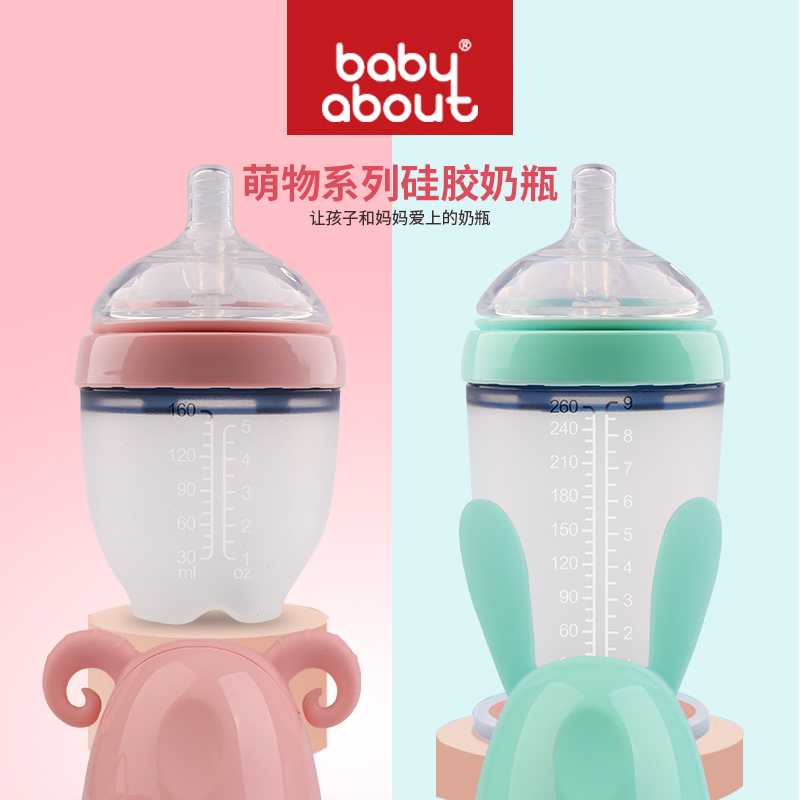 baby about婴儿硅胶奶瓶宽口径防摔防胀气学饮鸭嘴杯带手柄奶瓶160ml