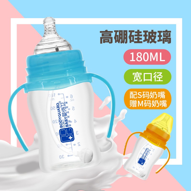 婴侍卫晶钻宽口手柄吸管玻璃奶瓶(180毫升/6安士) PP936