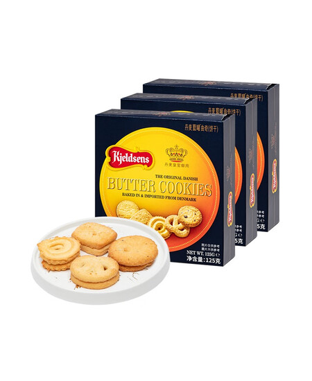蓝罐(Kjeldsens)原味曲奇饼干 125g*3盒装 丹麦原装进口 休闲零食早餐下午茶
