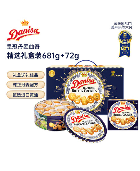 皇冠(danisa)丹麦曲奇饼干礼盒681g+72g休闲零食团购囤货中秋团圆送礼物进口
