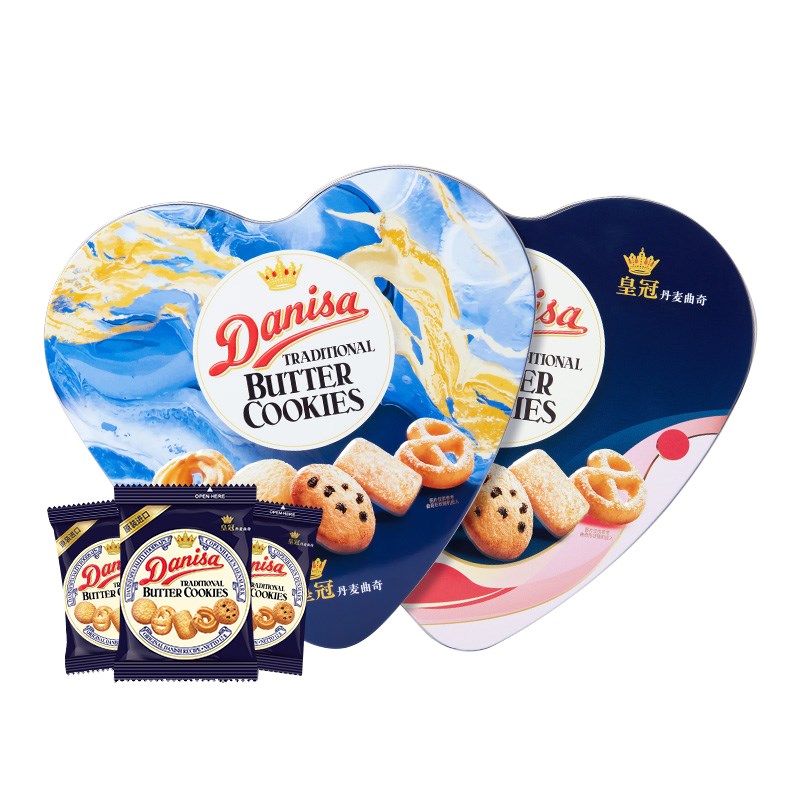 皇冠丹麦曲奇饼干缤纷装(132克心形版)蓝色粉色随机发