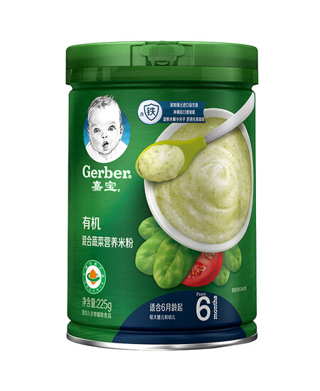 嘉宝(Gerber)米粉婴儿辅食 有机混合蔬菜米粉225g