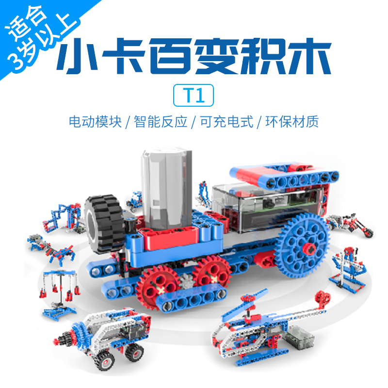 小卡百变积木T1智能创客教育套件电动机器人STEM编程玩具拼装模型电子齿轮工程机械组装小学生拼搭儿童小颗粒