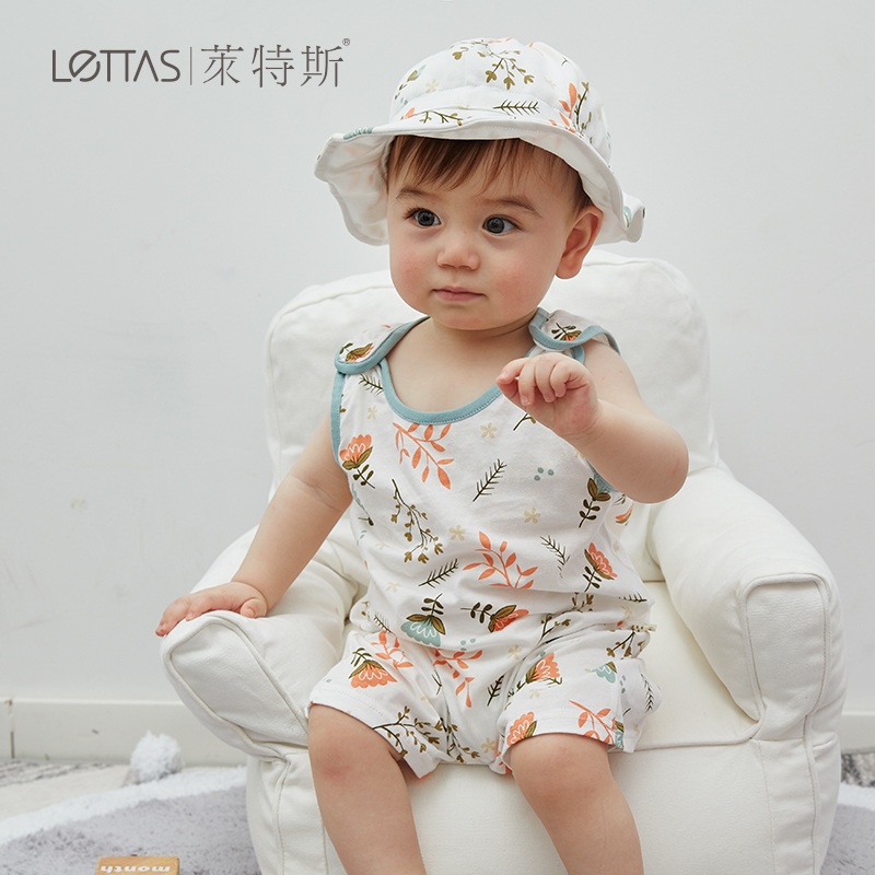 Lettas宝宝哈衣纯棉无袖印花婴儿衣服新生儿宝宝爬服包屁衣连体衣夏薄款LH013