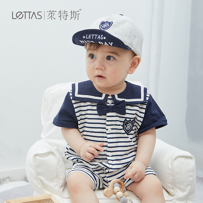 LettasA类纯棉宝宝连体衣新生儿网红婴儿衣服夏季薄款男帅气绅士包屁衣LH025