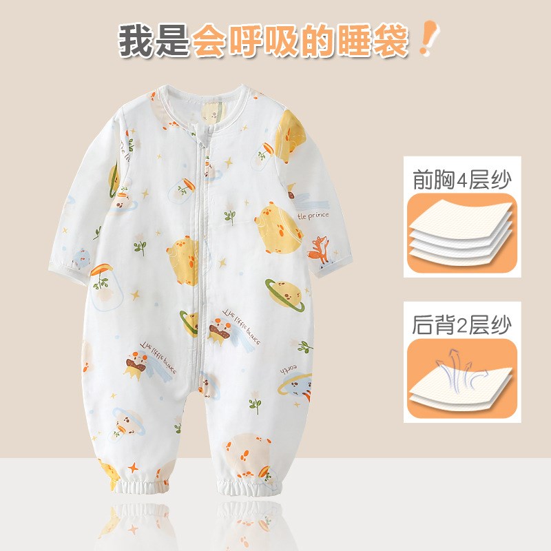 Honeyson婴儿睡袋夏纱布分腿睡袋纯棉儿童防踢被宝宝家居睡衣 S008