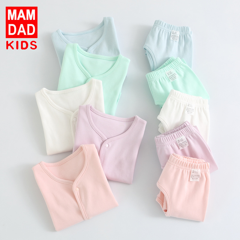 KIDS MAM&DAD 爸妈亲婴幼儿内衣套装纯棉可开档秋裤爸妈亲宝宝内衣套装秋衣秋裤和尚服88714