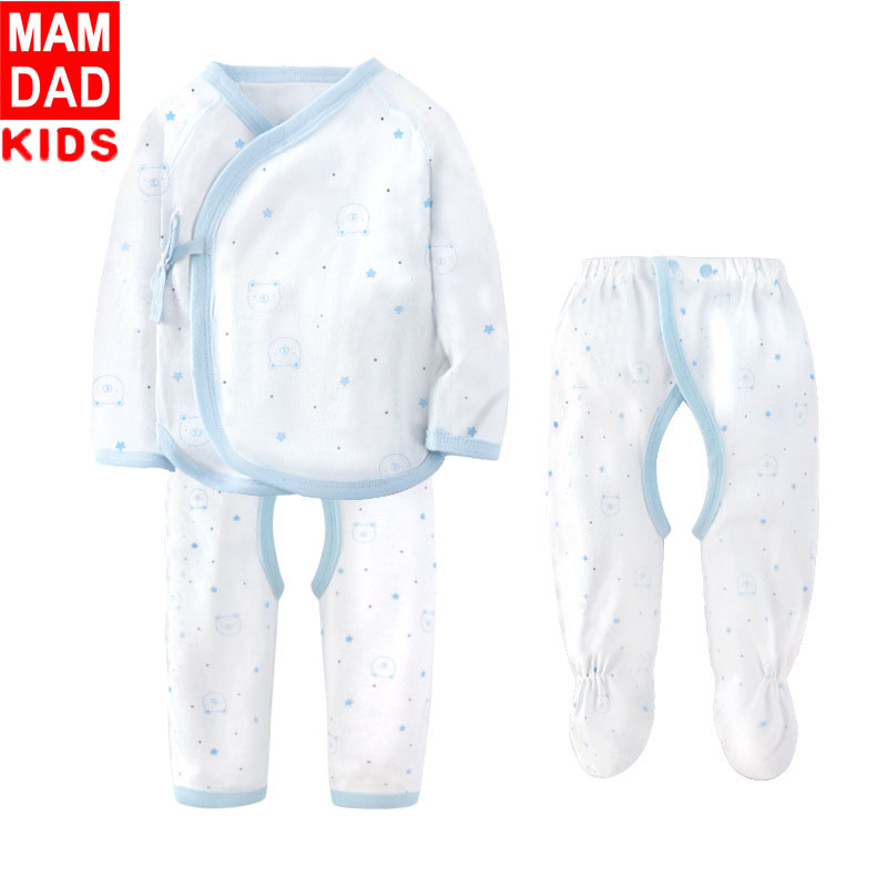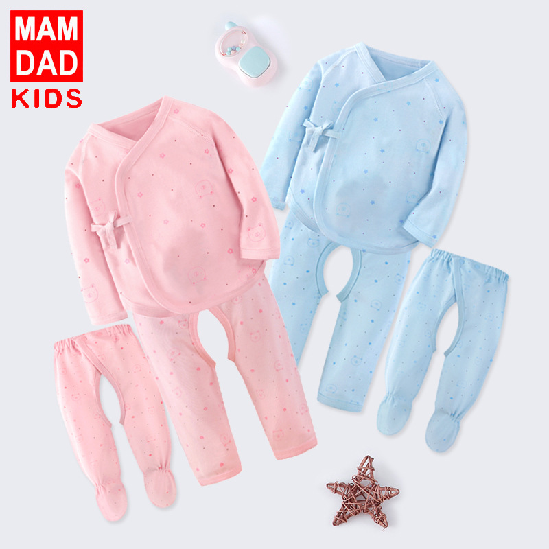 KIDS MAM&DAD爸妈亲春夏纯棉新生儿内衣 0-3月宝宝全棉绑带和尚服新生婴儿内衣两件装89309