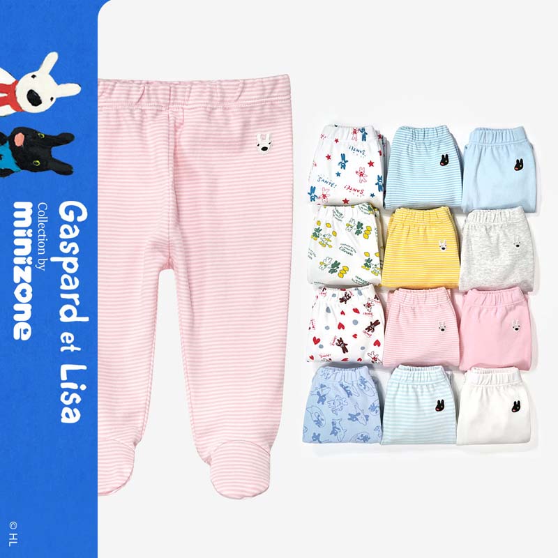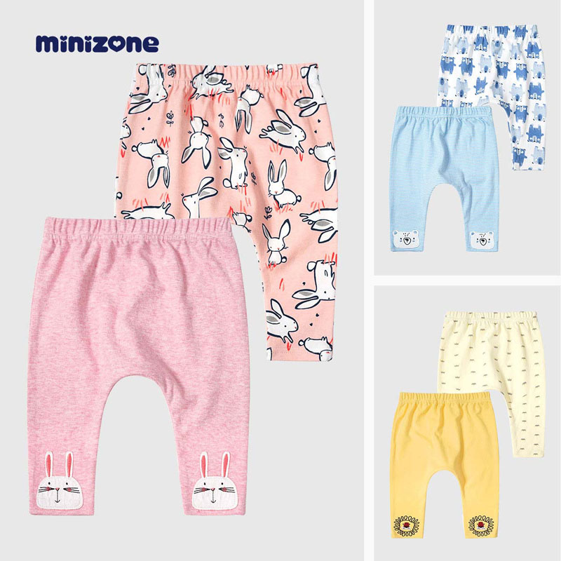 minizone新生儿裤子儿童纯棉睡裤婴幼儿打底裤男女宝宝可开裆纯色春秋 M1202