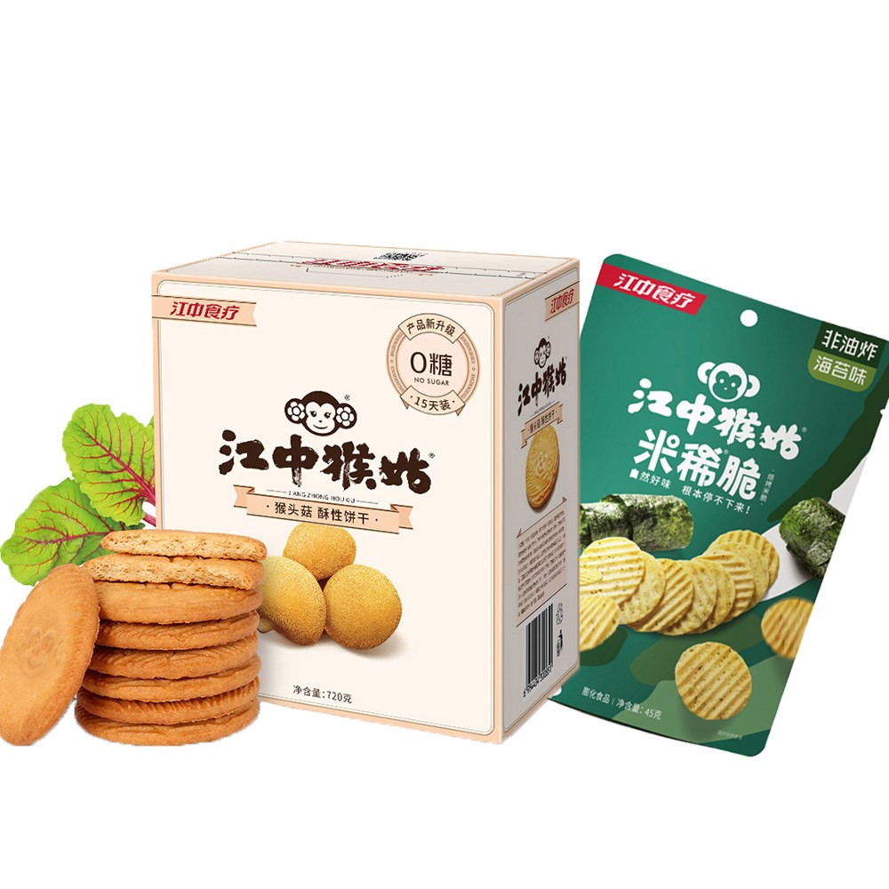 江中猴姑酥性无糖饼干720g+45g米稀脆1袋(随机口味)