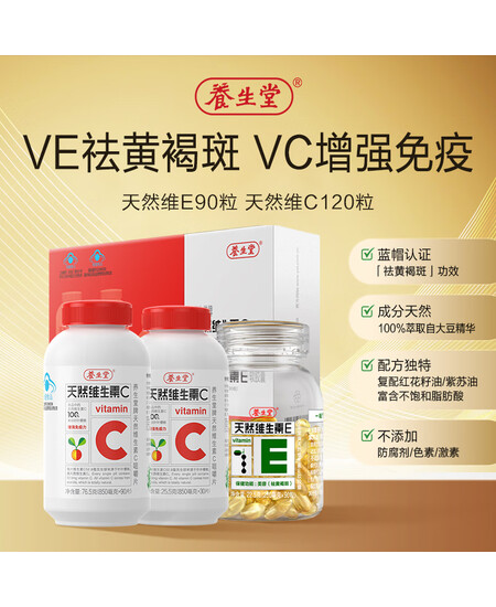 养生堂天然维生素EC礼盒(ve90+vc90+vc30)ve祛除黄褐斑 vc增强免疫力