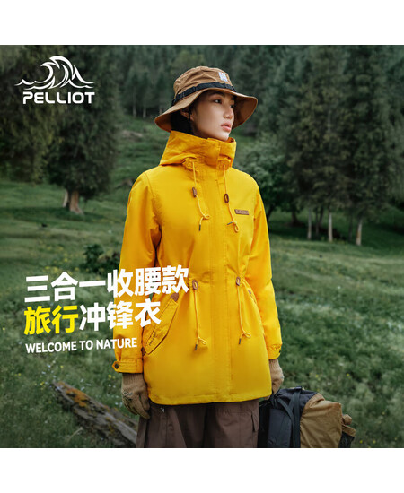 伯希和(Pelliot)冲锋衣女三合一户外夏季中长夹克防风硬壳登山外套22640110黄L