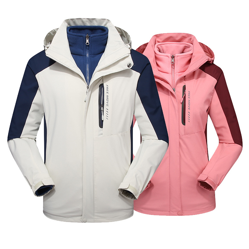 DZRZVD/杜戛地冬季登山情侣三合一两件套复合绒内胆防水保暖拼色男女冲锋衣LG2927