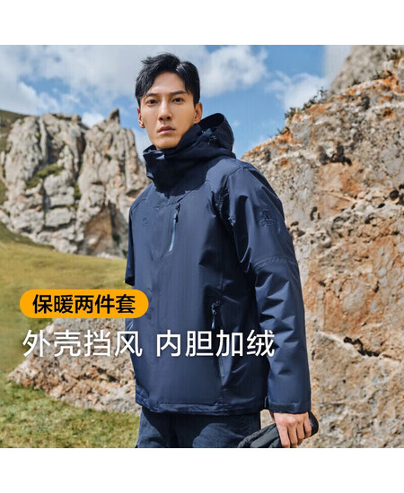 骆驼(CAMEL)户外冲锋衣情侣款防风透气保暖三合一冲锋衣 A4W217009 普蓝男 M