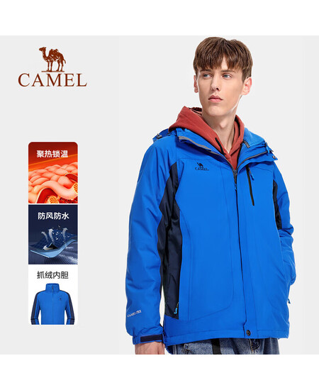 骆驼(CAMEL)户外冲锋衣情侣款防风透气保暖三合一冲锋衣 A4W217009 普蓝男 L
