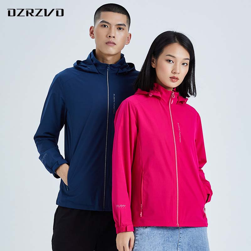 DZRZVD/杜戛地秋季新款四面弹力外套男网布内衬户外单层冲锋衣女连帽防风衣8826A