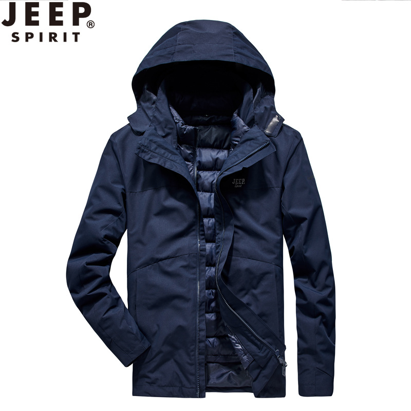JEEP SPIRIT秋冬款男士户外冲锋衣三合一棉服内胆保暖登山服两件套1006