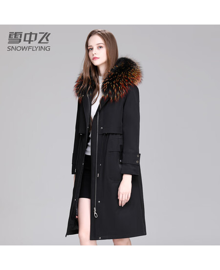 雪中飞大毛领羽绒服女过膝冬季韩版收腰显瘦派克服中长款可拆卸内胆保暖外套X90141748F黑色L