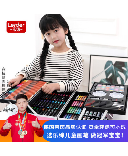 乐缔儿童画笔套装168件铝盒粉色美术学生学习用品文具生日礼物