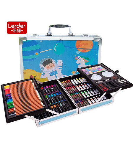 乐缔儿童画笔套装168件铝盒蓝色画画工具套装丙烯水彩颜料绘