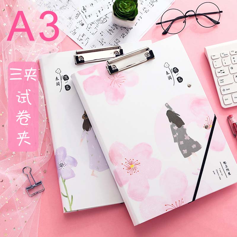 咔巴熊A3试卷夹书夹子收纳文件夹板小学生小清新板夹多功能卡通横版试卷夹学生写字垫板夹卷子可爱文件夹韩版三板夹两个装KBX-5097