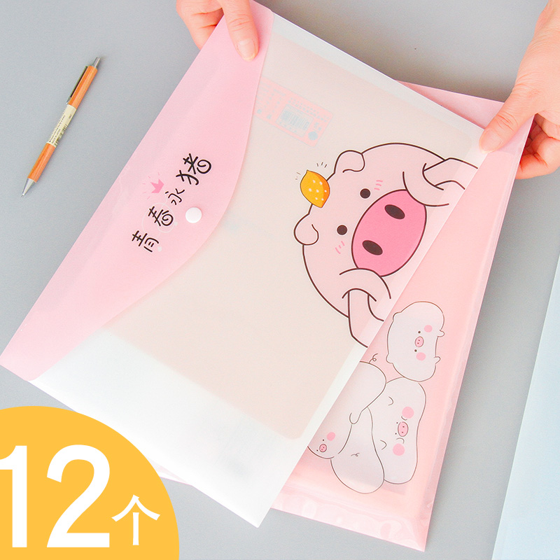 咔巴熊a4文件袋透明防水试卷资料文具卡通学生女大容量多层分类可爱韩国小清新按扣收纳包档案夹简约小学生用KBX-6107