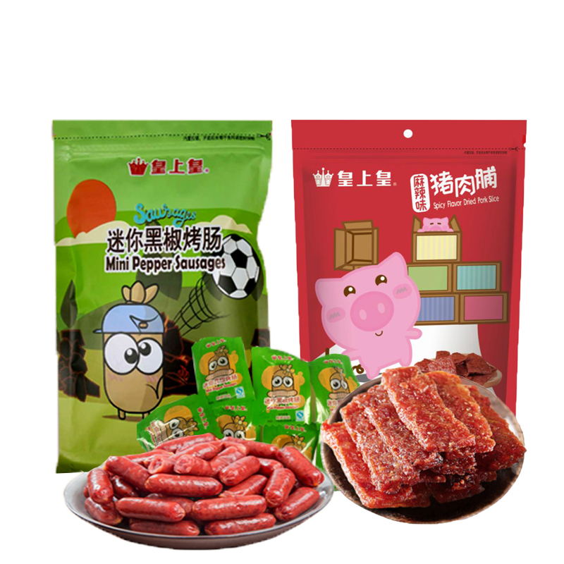 皇上皇70g迷你黑椒烤肠 + 皇上皇80g麻辣味猪肉脯(两种包装随机发货)