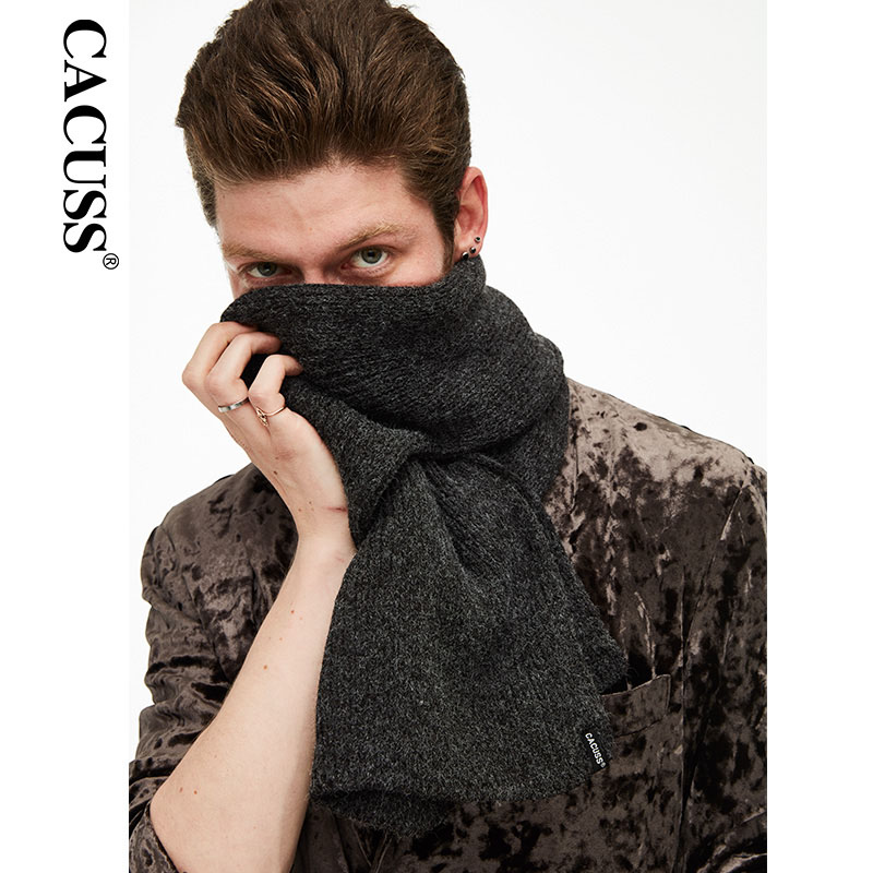 CACUSS围巾男士秋冬季新款保暖加厚简约潮羊毛围巾男士生日礼物W0260