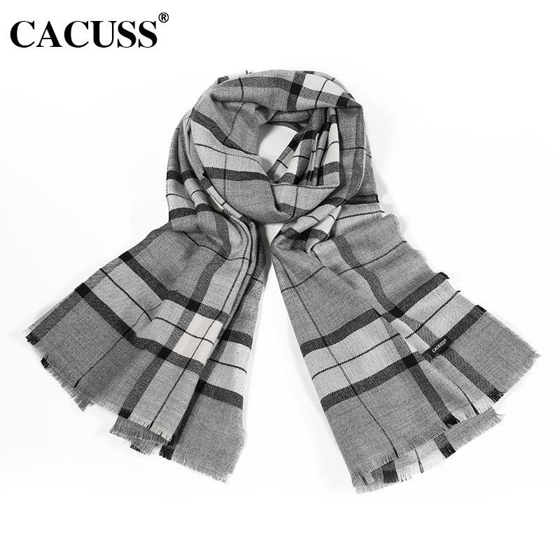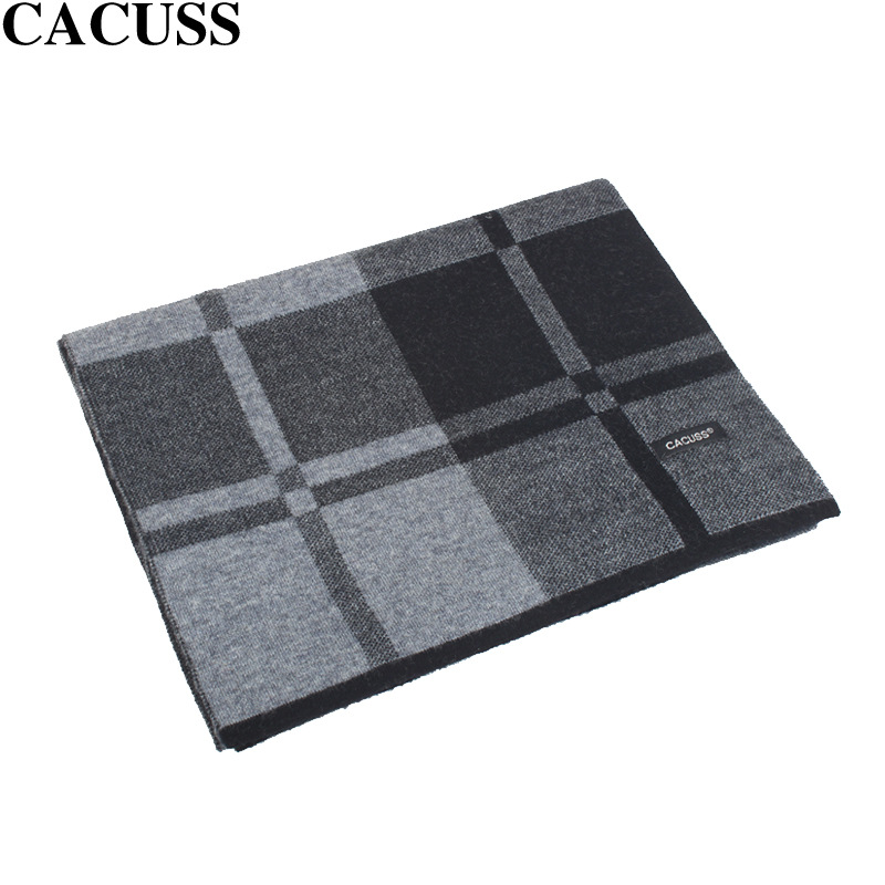CACUSS纯羊毛围巾男士韩版商务长款加厚秋冬季男式潮英伦格子围脖W0085