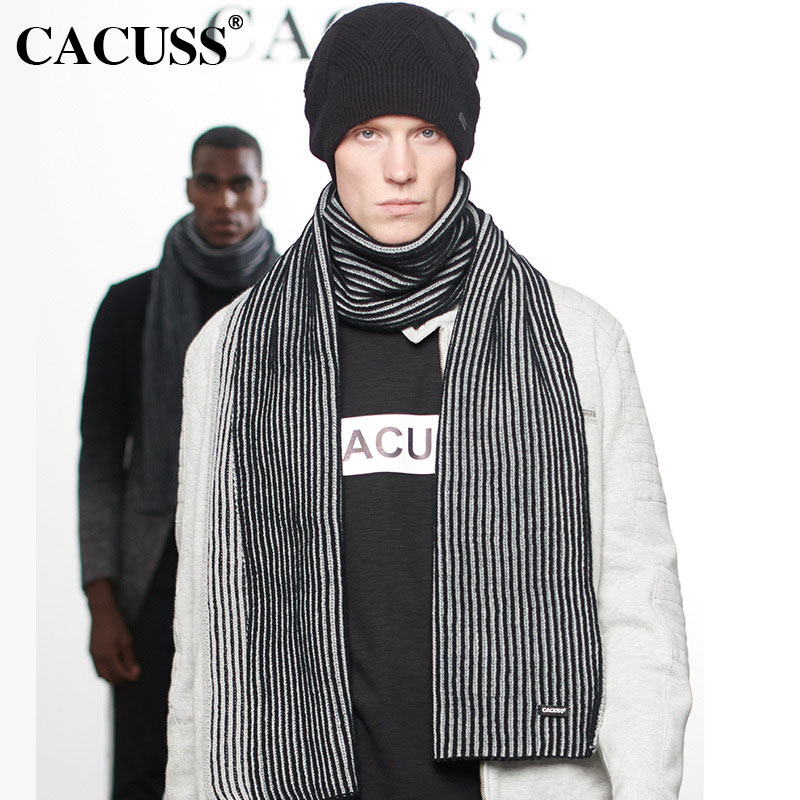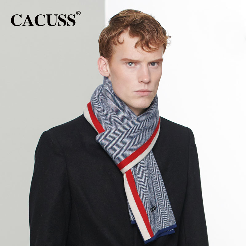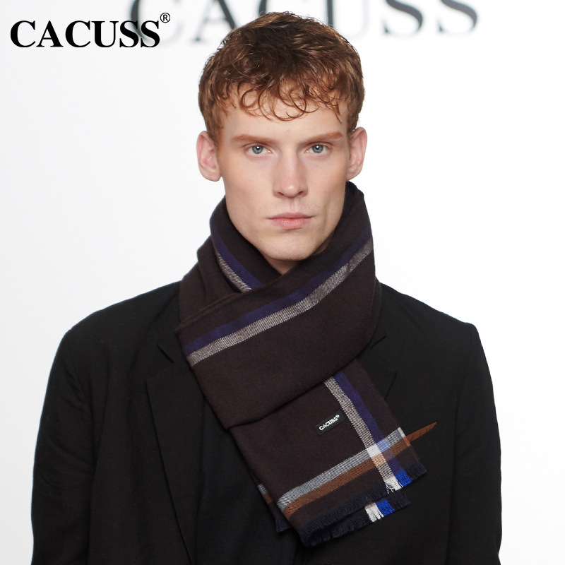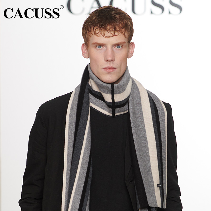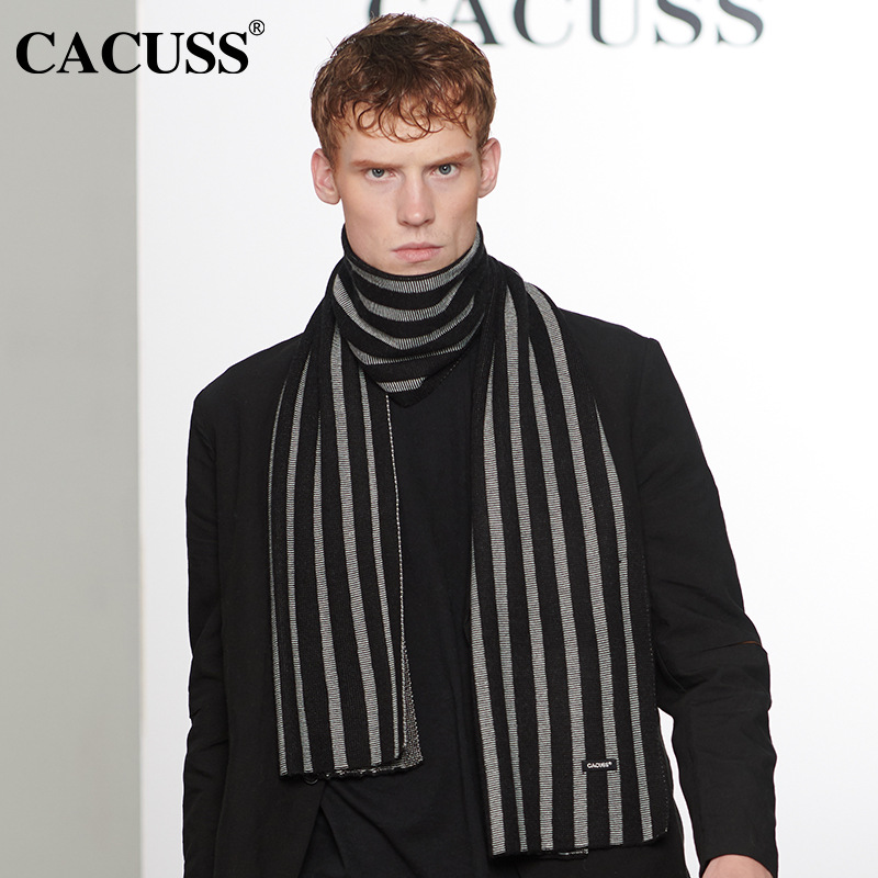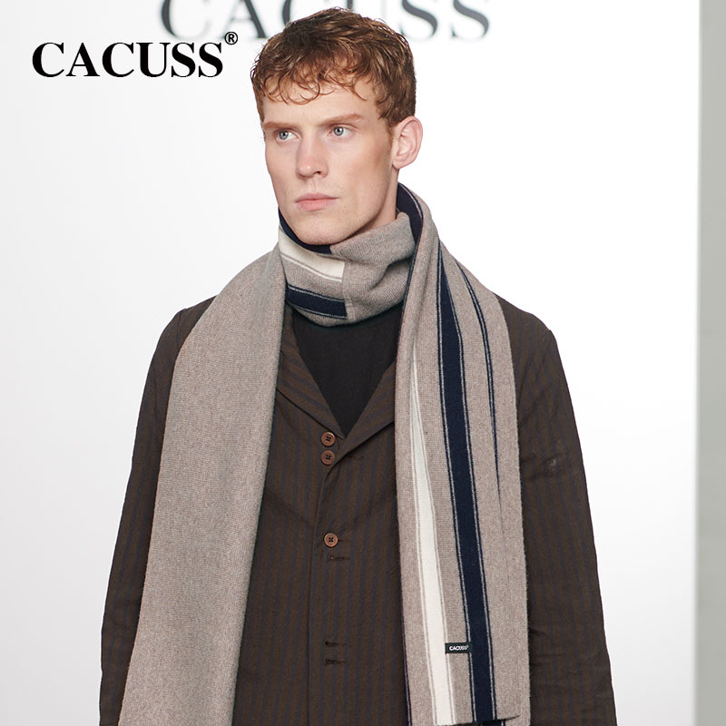CACUSS秋冬新款围巾男时尚简约条纹保暖加厚巴素兰羊毛男士W0219
