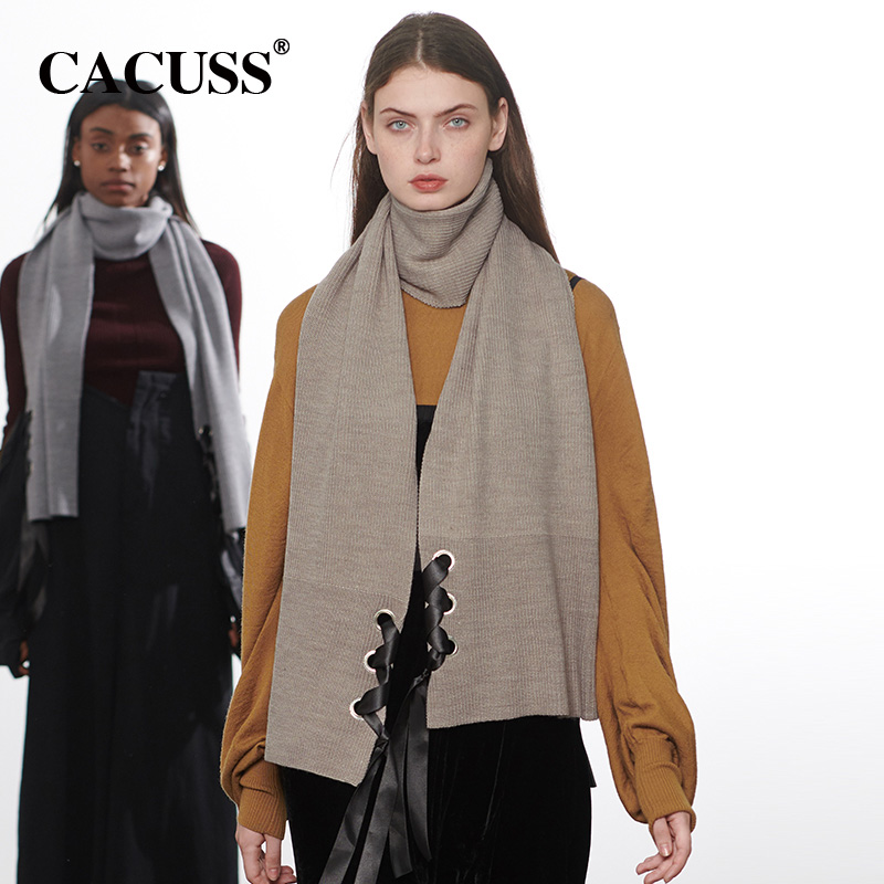 CACUSS围巾女新品简约纯色保暖巴素兰羊毛围巾女士生日礼物W0224