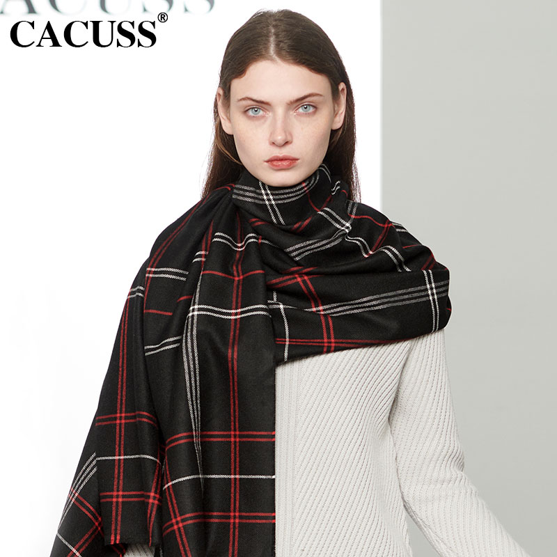 CACUSS冬季保暖羊毛围巾秋冬女欧美围脖女加厚长款格子大披肩女士W0215