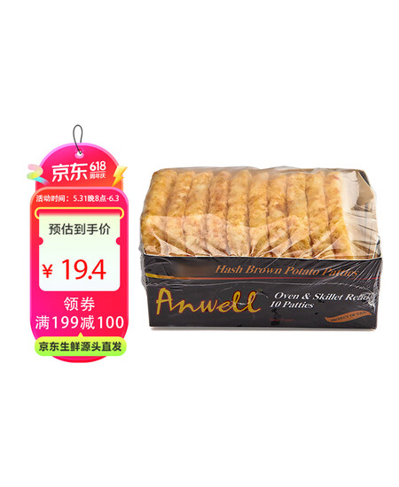 安维(Anwell)美国原味薯饼 620g 冷冻薯饼 速食 牛排好搭档 空气炸锅半成品菜