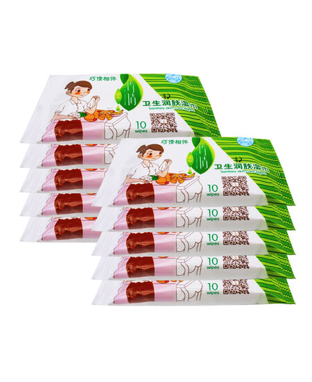 巧倩(QIAOQIAN)卫生湿巾10连包100片 湿纸巾卫生湿手帕纸 孕妇儿童便携湿纸巾