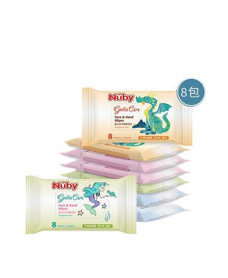 努比(Nuby)新生儿湿纸巾成人可用便携出行迷你随身装 (迷你8抽)8包入