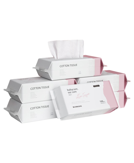 babycare兔兔棉柔巾100%纯棉婴儿干湿两用巾洁面巾一次性洗脸巾100抽6包