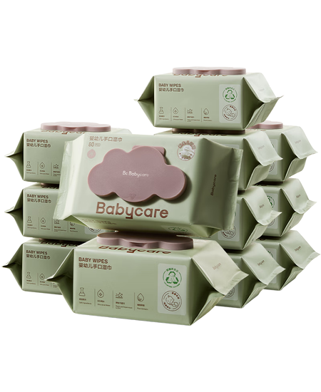 babycare婴儿手口湿巾加厚擦脸带盖湿纸巾大包装6480紫盖湿巾80抽-12包