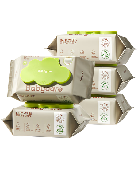babycare婴儿手口湿巾新生儿湿纸巾宝宝带盖大包装 3150绿盖湿巾 80抽*5包