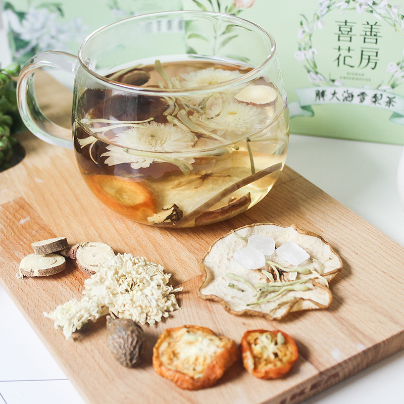 喜善花房胖大海雪梨茶 润喉茶特级菊花茶金银花花茶盒装组合茶 花草茶120g/盒