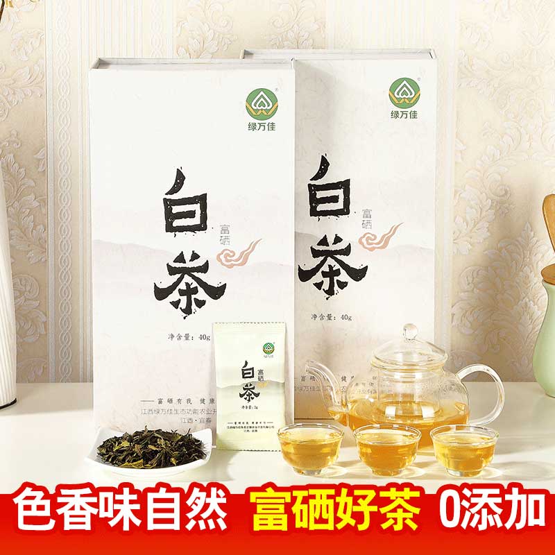 绿万佳富硒茶白茶新茶福鼎白茶浓香型茶叶礼盒装40g