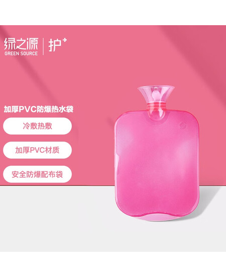 绿之源 加厚PVC防爆暖水袋1500ml嫩粉暖宝宝注热水袋暖肚子暖手袋
