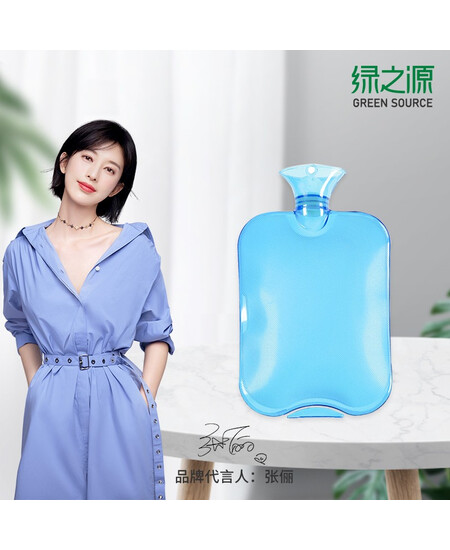 绿之源 加厚PVC防爆热水袋湖蓝色附带防烫袋 暖手宝热水袋注水暖宝宝