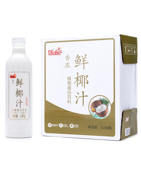 高沃(GAOWO)海南1号正宗海南泰式鲜榨椰汁年货节礼盒装椰子汁1L*6瓶 整箱