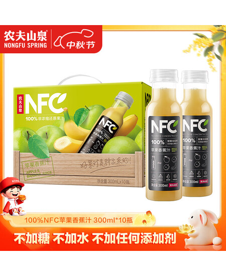 农夫山泉100%纯果汁NFC苹果香蕉混合汁300ml*10瓶整箱中秋礼盒鲜果压榨