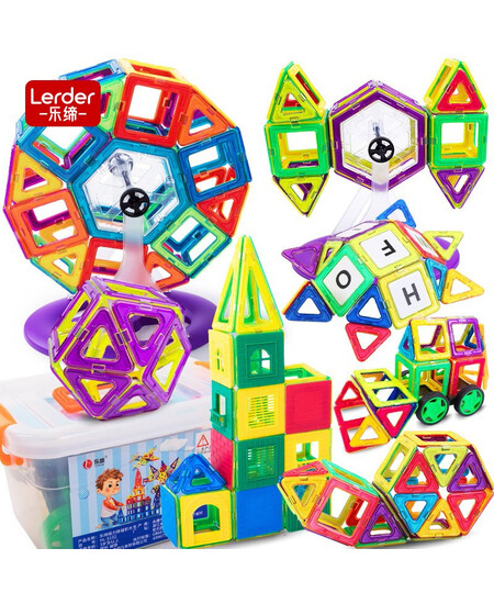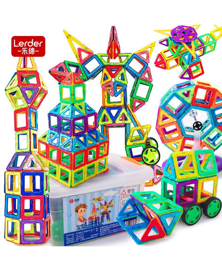乐缔182件磁力片儿童积木磁性铁玩具丨64个磁力片+64个配件+54张4D卡