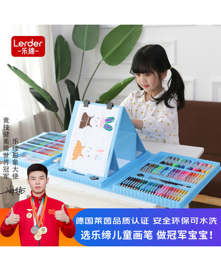 乐缔208件蓝色儿童画笔画画套装男女孩学生画笔水彩笔无毒工具可水洗