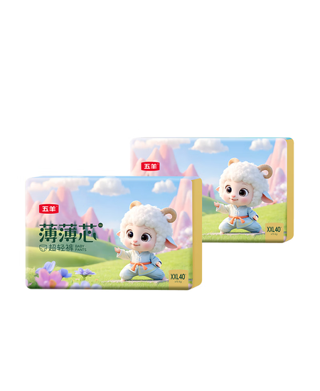 五羊(FIVERAMS)拉拉裤薄薄芯成长裤XXL80片 (15kg以上)婴儿尿不湿超薄透气不闷