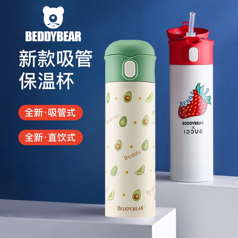 韩国杯具熊网红吸管保温杯女士水壶清新大人可爱成人孕妇产妇便携水杯