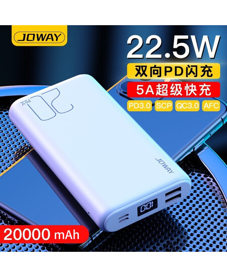乔威 JP219 华为5A超级快充20000毫安时PD快充移动电源充电宝 22.5W双向苹果快充 苹果华为P40小米通用 白色