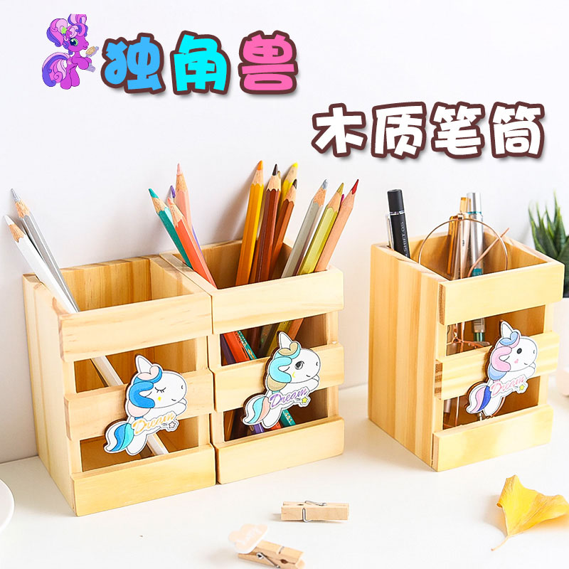 咔巴熊独角兽木质笔筒多功能可爱卡通清新学生文具桌面摆件收纳盒KBX-1027